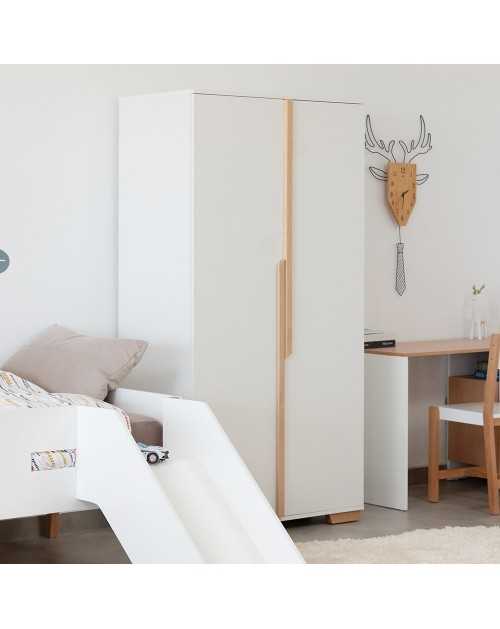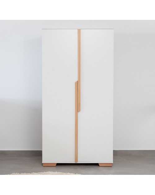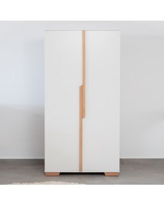Avec sa forme épurée et ses coloris discrets, cette armoire est un meuble de rangement intemporel. Son piètement et sa structure finition offrent un rendu chaleureux et design. Contrastant avec le bois, les deux grandes portes blanches illuminent l'ensemble. Un mélange de matériaux justement dosé qui fait tout le charme de ce meuble.