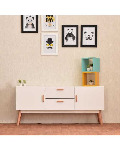 Mariage des styles scandinave et moderne, le buffet 2 tiroirs 2 portes est un meuble de rangement plein de charme.