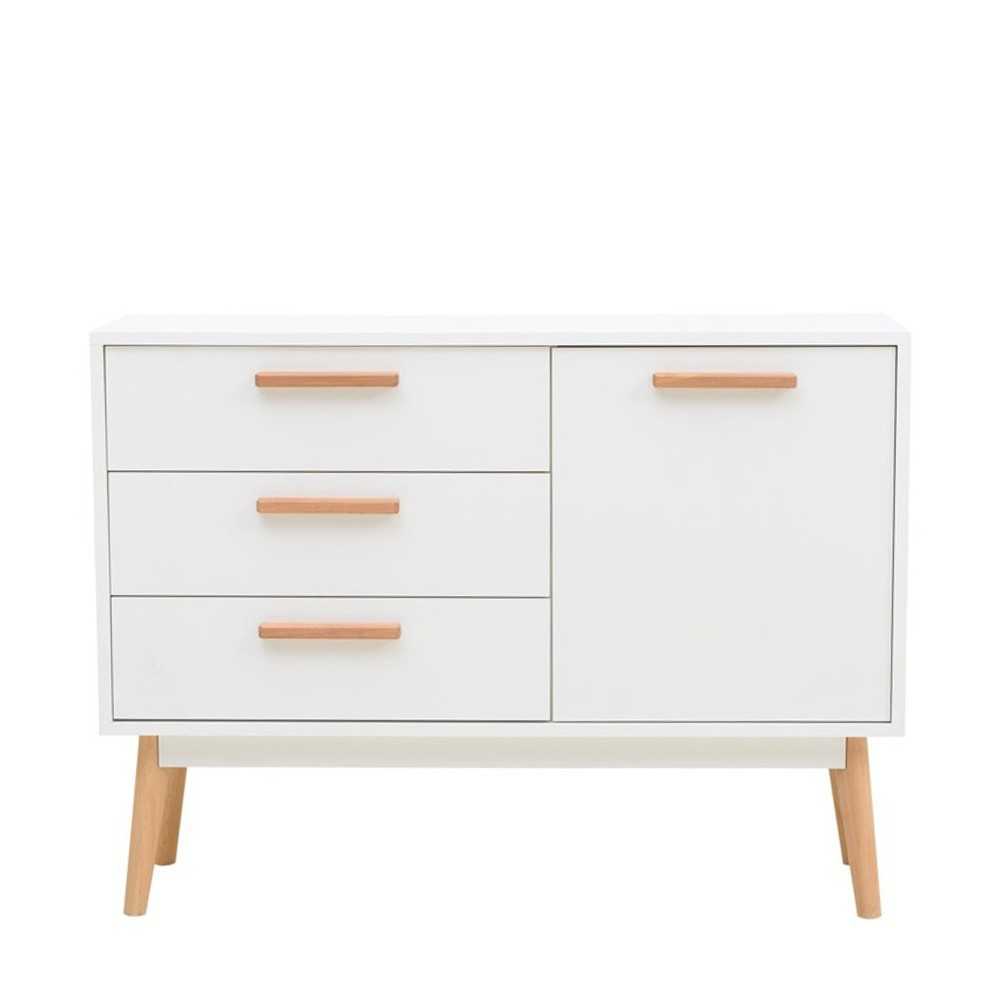 Un petit look vintage scandinave pour le buffet scandinave 1 porte 3 tiroirs, qui offre un bel espace de rangement grâce à son placard et ses 2 tiroirs. Il sera parfait dans un intérieur décliné dans des tons clairs et vous permettra de créer une atmosphère chaleureuse et épurée.