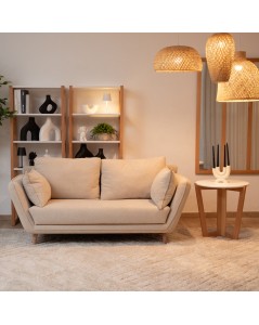 Compact et raffiné, le canapé 2 places séduit par son allure épurée et son confort remarquable. Parfait pour les petits espaces ou en complément d’un grand salon, il est habillé d’un tissu doux au toucher, résistant à l’usage quotidien. Ses accoudoirs inclinés et ses pieds en bois de hêtre apportent une touche naturelle et élégante. Accompagné de coussins moelleux assortis, il offre un cocon de confort pour vos moments de détente.