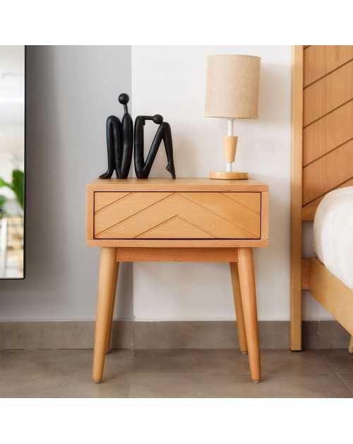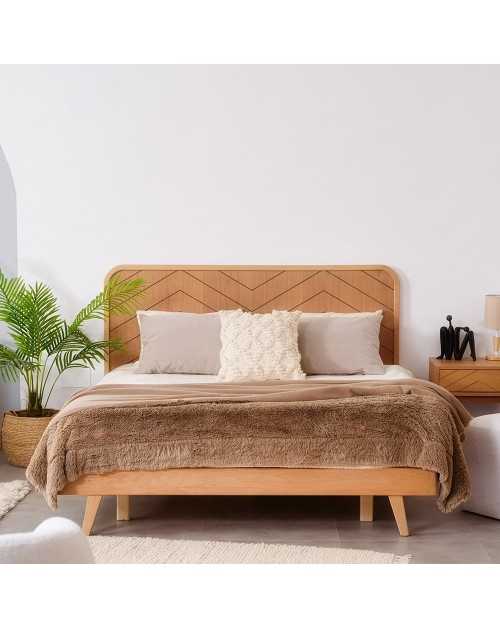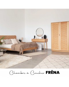 Un design type scandinave doux et harmonieux pour la chambre à coucher FRÊNA qui offre un large couchage pour 2 personnes composé d'un lit, deux tables de chevet, une coiffeuse et un dressing!