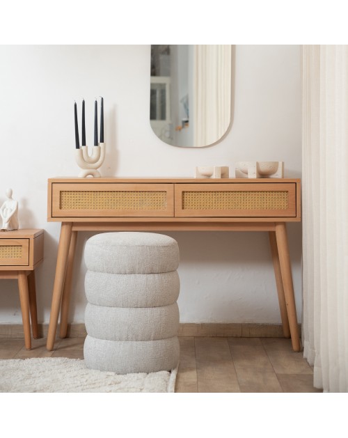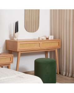 Une coiffeuse qui allie élégance et fonctionnalité, où chaque détail est pensé avec soin. Son design raffiné mêle harmonieusement le cannage, le bois de chêne et le bois de hêtre pour créer une pièce à la fois tendance et intemporelle. Un meuble pensé pour sublimer votre espace tout en vous offrant un moment de bien-être au quotidien.