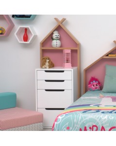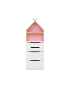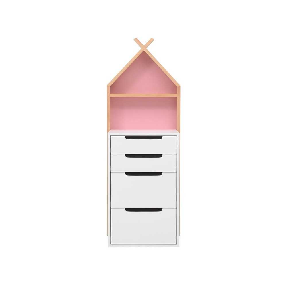 La commode Leo cabane accompagnera le reste de la chambre grâce à son design créatif et moderne. Accueillant bien les jouets des enfants, la commode enfant est un meuble de rangement utile à tout âge.