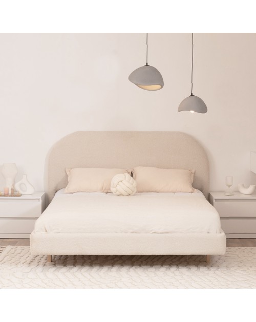 Symbole d’élégance et de confort, le lit double Moon transforme la chambre en un véritable havre de paix. Reposant sur une structure en bois avec piétement discret et sommier à lattes. Il séduit par sa tête de lit arrondie et son revêtement en tissu effet laine bouclée, à la fois chaleureux et moderne. Facile à marier avec le reste du mobilier, son coloris blanc apporte lumière, calme et douceur à l’espace nuit, créant une ambiance propice à la détente.