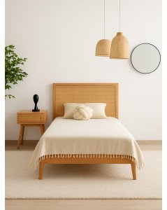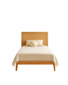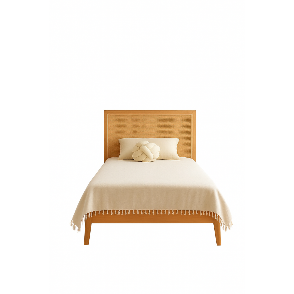 Sa tête de lit en cannage apporte une touche artisanale authentique, tandis que son socle en hêtre assure robustesse, stabilité et longévité au quotidien.