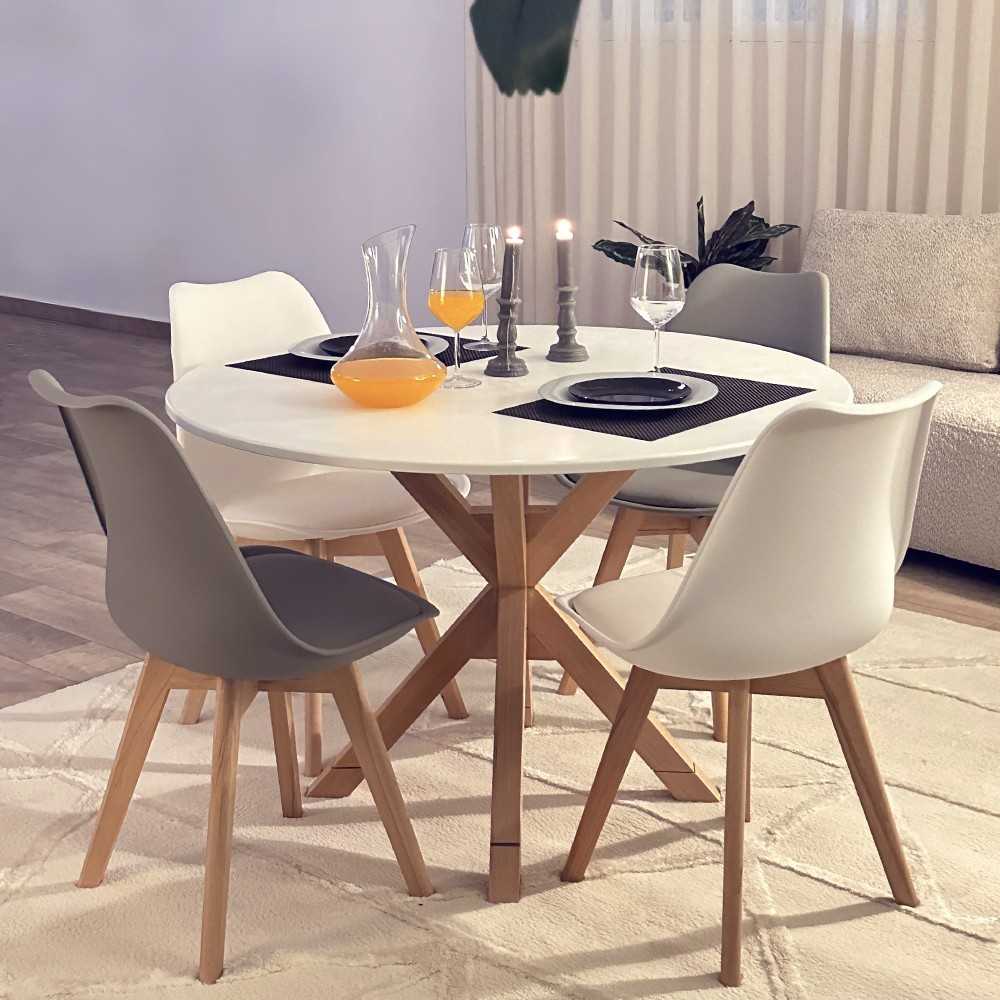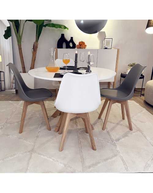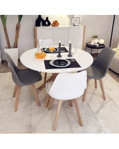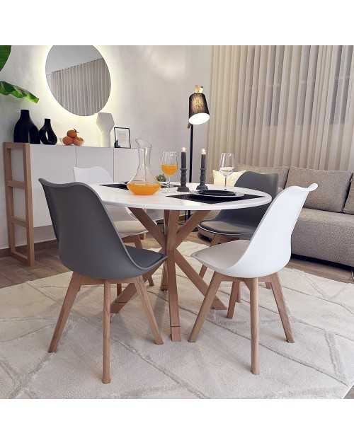 Chaises DSW Confortables: Les quatre chaises assorties sont équipées de sièges ergonomiques en plastique résistant et de pieds en bois de hêtre, offrant un équilibre parfait entre confort et durabilité.